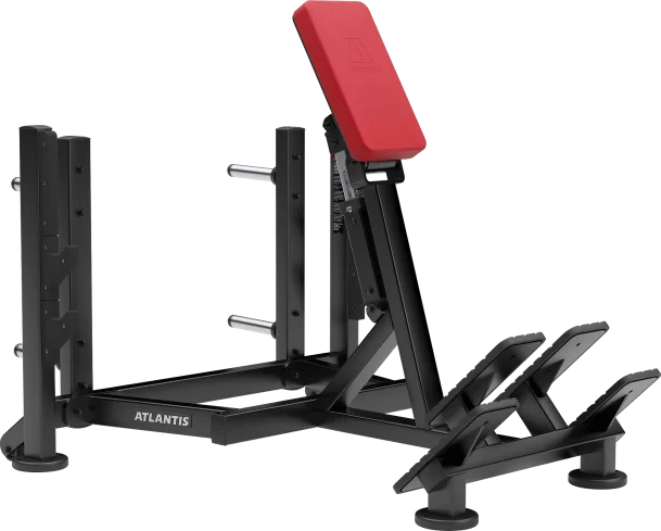 - Knee pad assembly folds down easily to allow unassisted exercise.