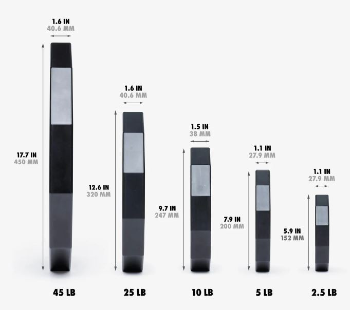 - Easy-Grip Handle: 10 to 45 lb plates feature an easy-grip handle that aids in loading the bar or picking up plates from the ground